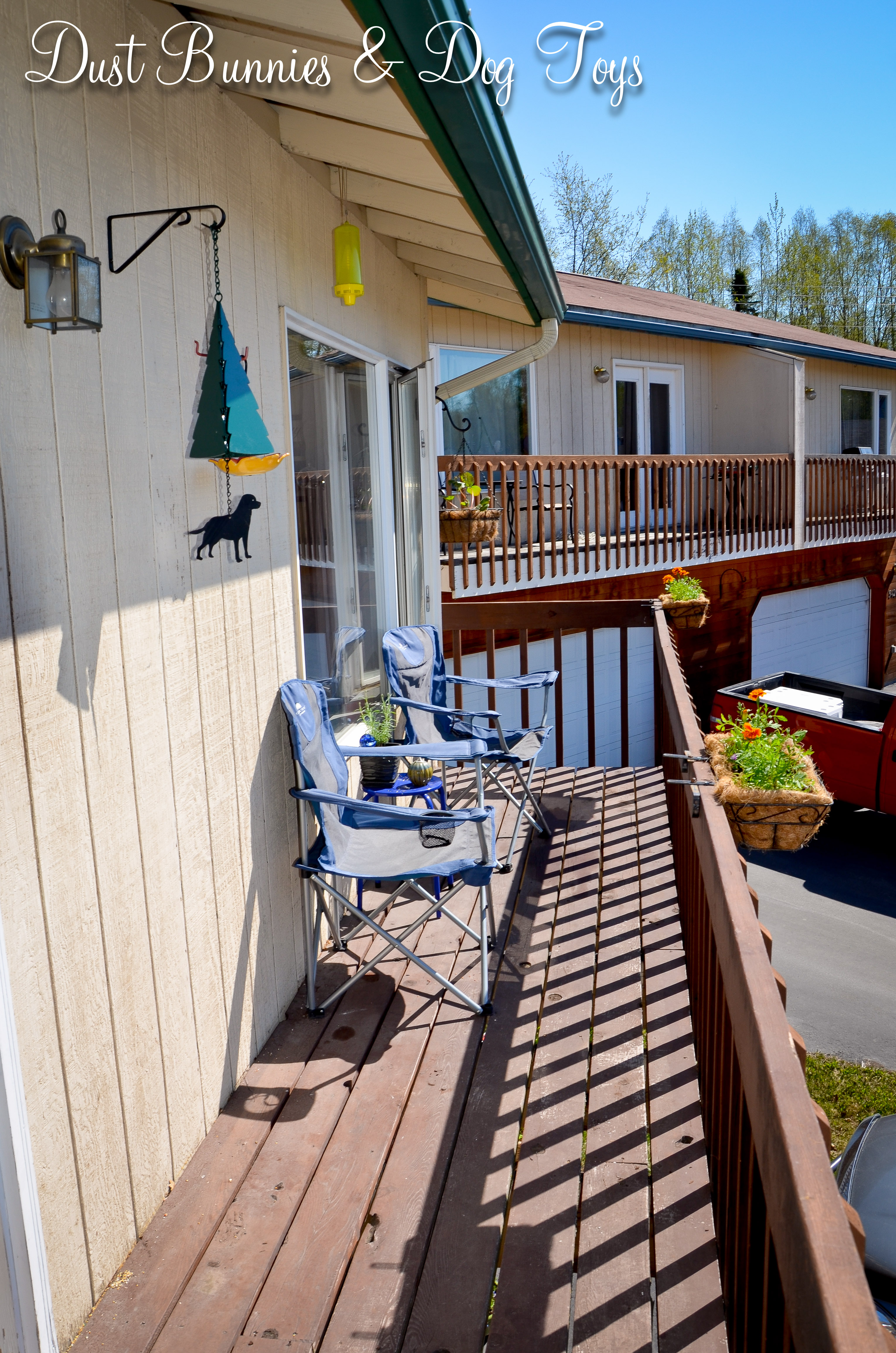 Summer time has finally arrived here in Alaska and that means it’s time to get outside and soak it up before winter descends again in a few short months. Luckily, our rental house has a little balcony right off the main living room that is a perfect spot to sit and enjoy an evening chat. Unfortunately it was looking a little sparse when we first moved in this winter. So I decided to make it a bit more inviting.