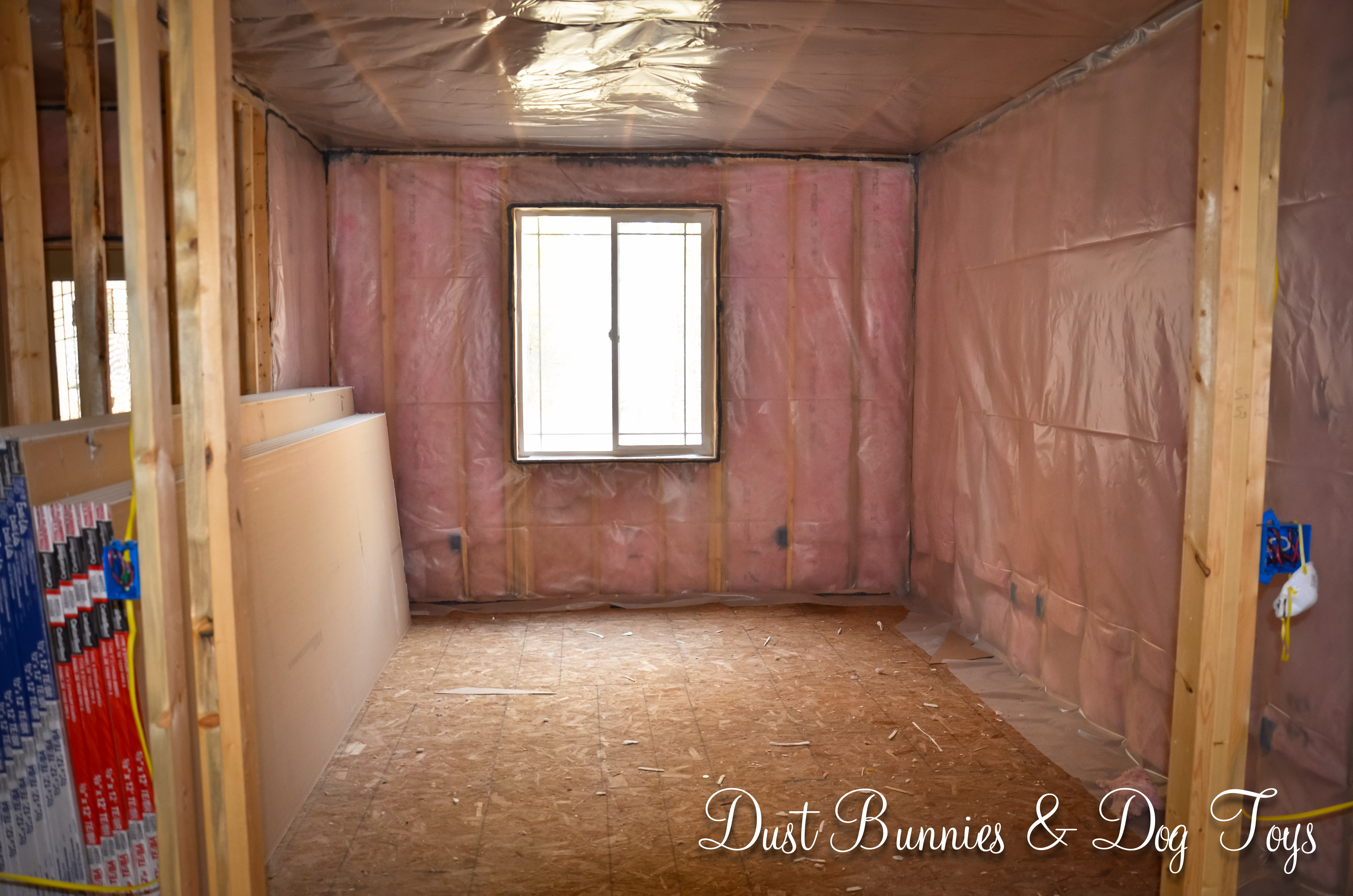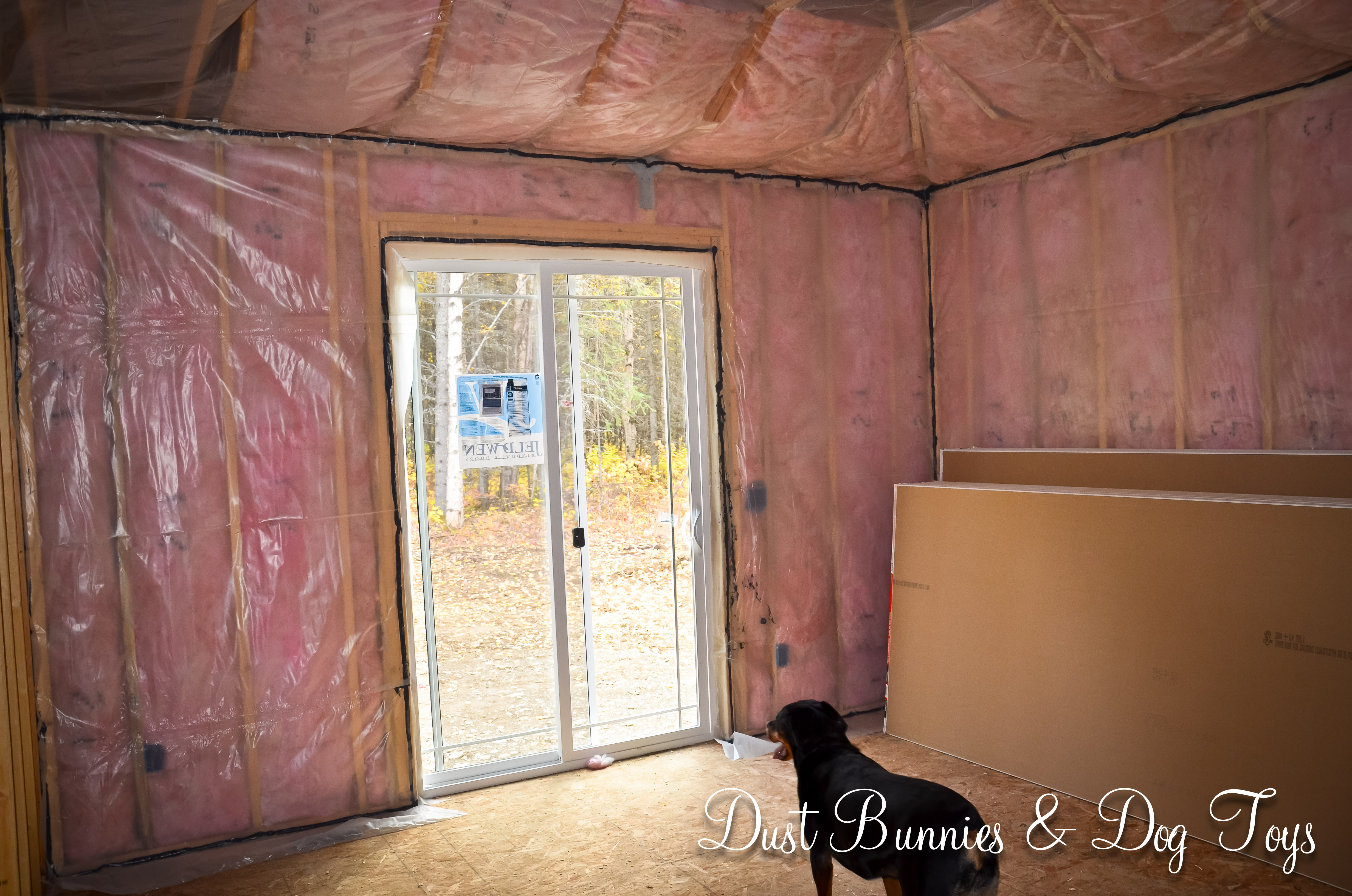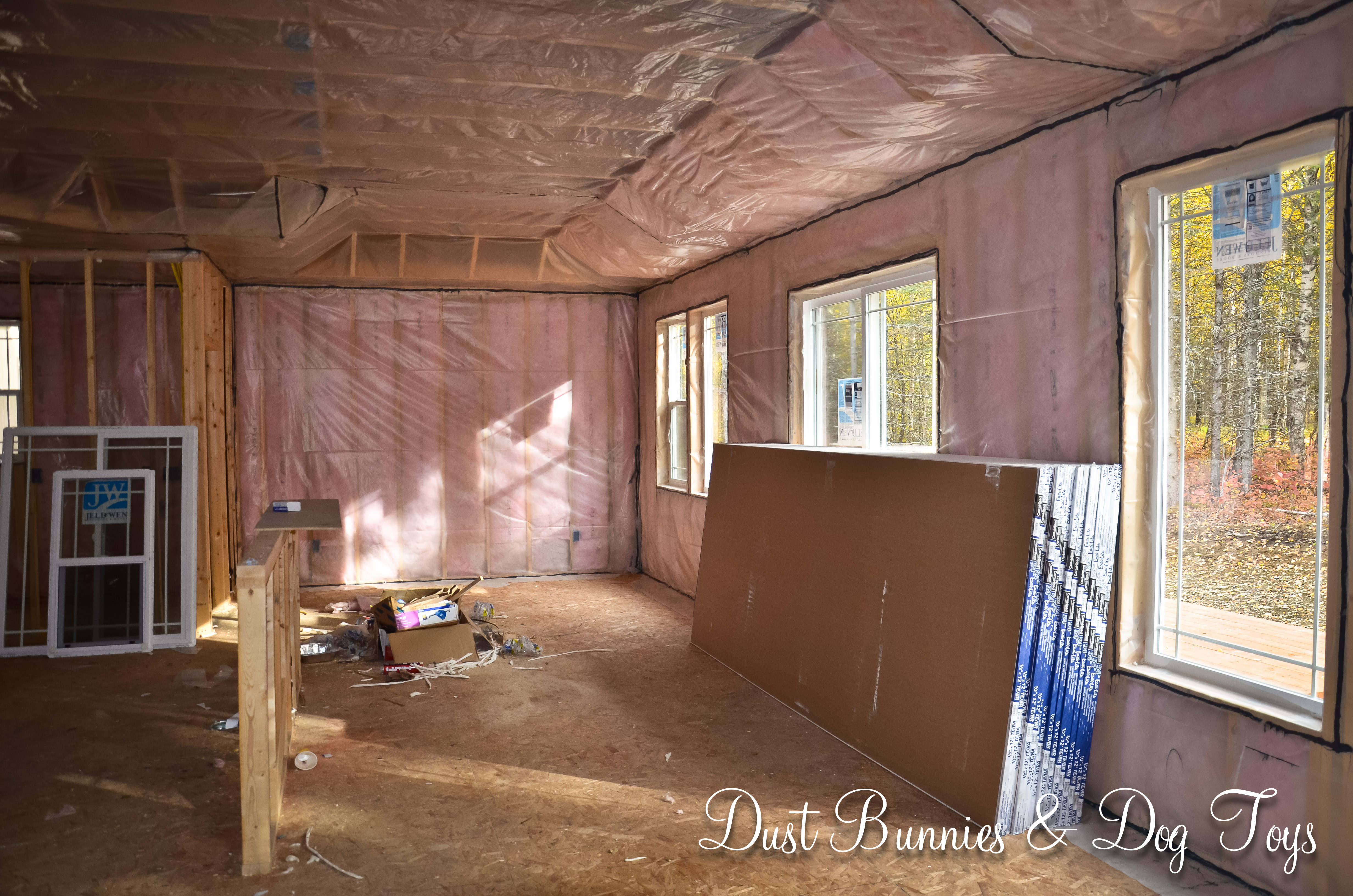 Here’s a quick update on the house as of last weekend. The electrical is done except for the actual power line from the road to the house, which has to be done by the electric company. The insulation has been installed and sealed with plastic for energy efficiency on all exterior walls. Drywall will begin being installed this week, which will start to give us a sense of the actual space in each room.