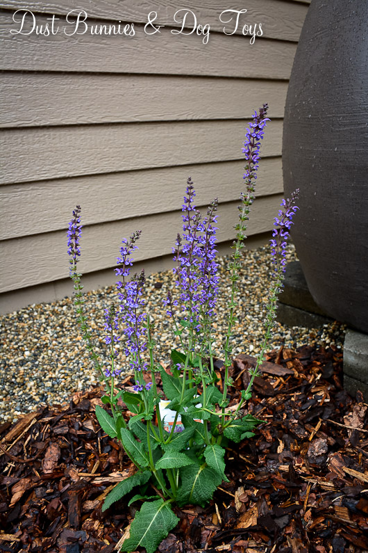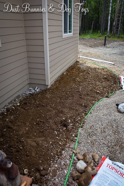 Then we put a section of pea gravel on top of the fabric along the house so when the rain water runs off the roof it doesn’t pool in the bed. Luckily, the hubs was able to get a free supply of gravel that worked out to be just the right amount for this project!