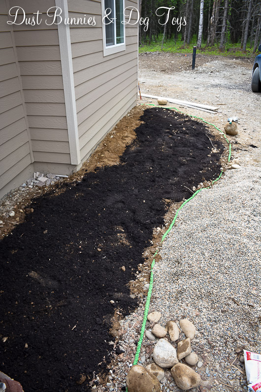 We added a layer of top soil on top of the tilled ground in the area where we planned to plant.
