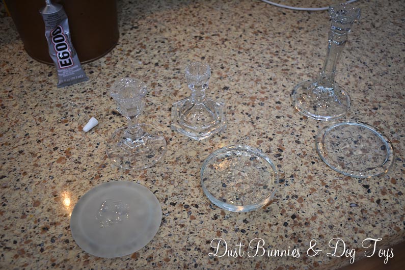 The three shorter candlesticks were paired with the glass trays to create pedestals of varying heights. I think one of the trays was actually a paper weight, but I like that one has a thicker platform since some items might look better with that.