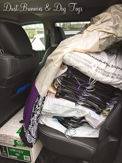 Now that I had everything on hangers and tagged I organized everything by category in the guest closet (which was completed just in time!) and bagged batches of items so they would be easier to transport to the sale. I can’t take credit for this awesome idea, it was another suggestion from the sale’s organizers. But it sure worked well!