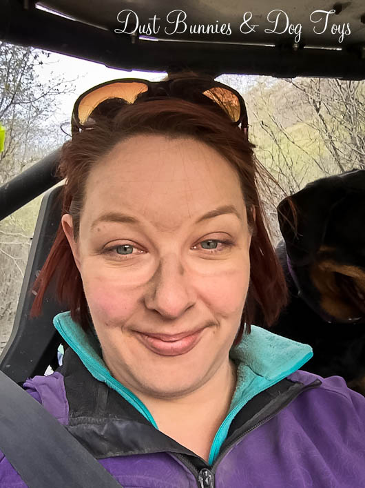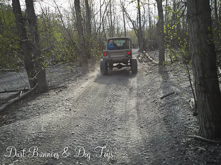 We loaded up the dogs in the back of our side-by-side and hit the trail with a group of guys the hubs knew from work who were also part of the ride. We followed a friend’s jeep most of the way since he could test the depth of any water on the trail more safely than we could thanks to the height of his rig. Because the trail is along the river, the scenery and conditions are always changing. Most of the trail was pretty dusty due to the recent lack of rain, but other areas had large mud puddles from melted snow that hasn’t leeched back into the ground.