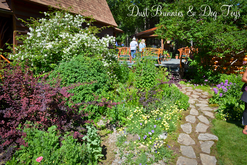 This is the view from the deck, down the stone walkway. That’s Les chatting with some ladies from the Anchorage Botanical Garden about – of course – garden stuff. I enjoyed listening in for a bit until they started talking above my head. 🙂