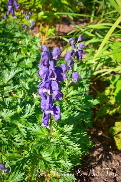 There was also a Monkshead plant tucked between the columbines. I was surprised to see how clumped it’s foliage was as when I spot these growing in the woods on our property it’s usually a single stem with just a few ‘hoods’ on it. I’m going to have to research them a bit more to see if this is a different variety or if it’s just that it is in full sun, versus the shade ours have under the trees. I’m aware that they can be poisonous so I won’t be adding them to the flower beds, but I’d still like to know.