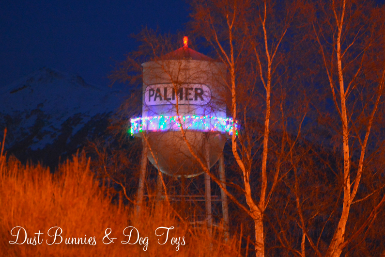 We’ve been trying to make it out for the Colony Christmas festivities in Palmer the past several years, but schedules haven’t lined up.  Luckily this year they did and we were able to catch some of the merriment.  The Hubs had to work until around 3, so we decided to start with the ceremonial lighting of the iconic water tower at 5 pm and the parade right after that.