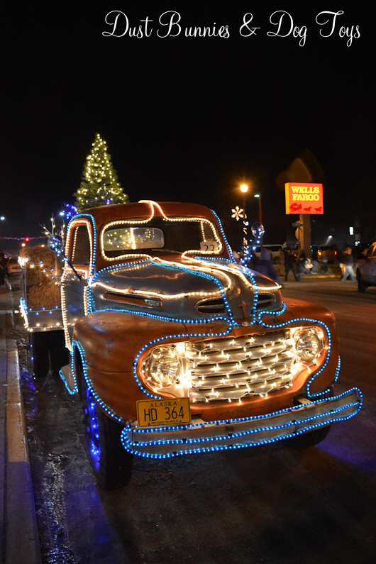 The parade was done on the main street in town, which has a quaint historic small town feel. Since it’s so dark this time of year, many of the vehicles in the parade were decorated with lights or pulled trailers decorated in lights.