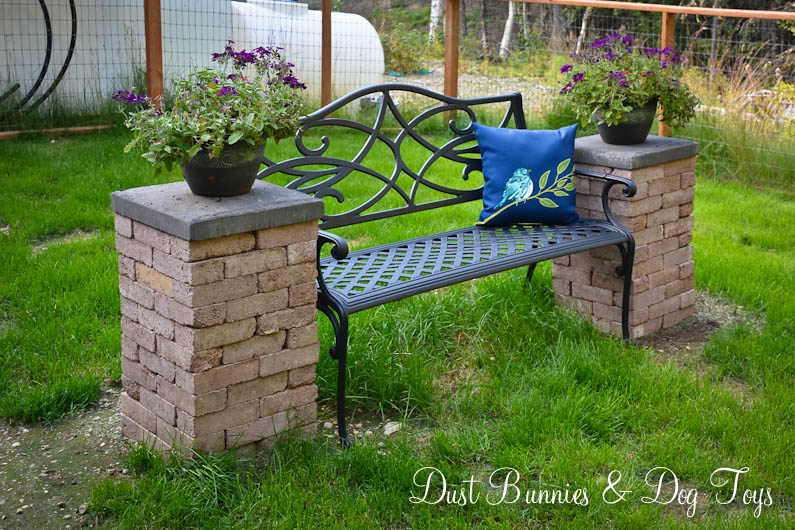 Today I’m sharing the new garden bench we added between the brick pillars we recently added to the side yard. I found a metal bench online that I liked but of course they wouldn’t ship to Alaska and the local store didn’t have any in stock, so I went into the store to see if they had anything similar hoping they’d have a decent option or two on sale for the end of the season.