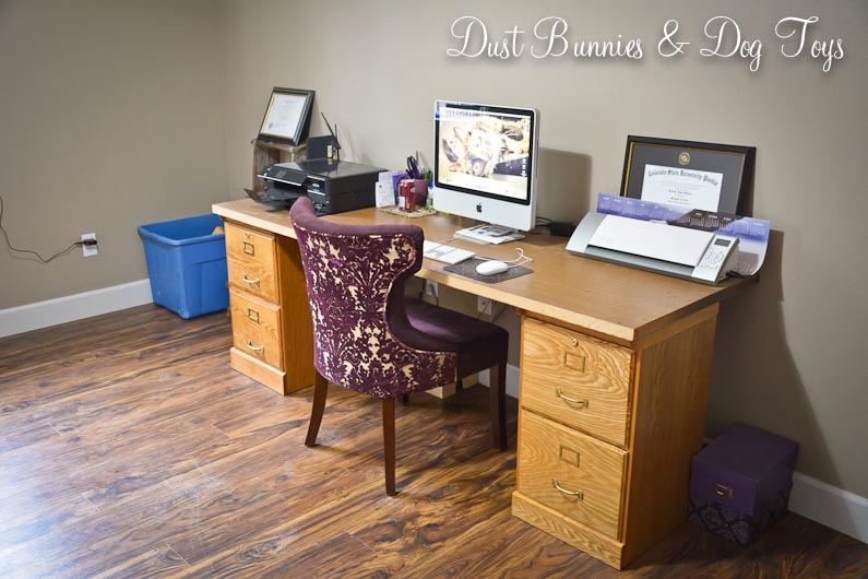 I placed the lamp from my old desk in the other corner behind the monitors. I already had the verse print from our trip to Hawaii when we visited a friend’s shop there, but I found a nice frame for it and placed the books I’m reading for professional development next to it.