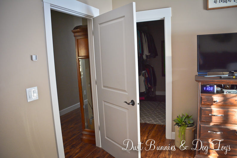 We recently made a very simple change in our master bedroom that had way more impact than we ever imagined. We’ve wanted to flip the direction our bedroom door swings since we saw the model of our floor plan. In fact, it was one of the two changes we requested of the builder, but by the time we noticed it hadn’t been done how we asked it was too late to change it before the final inspection because it would cover the light switches if we did. So we lived with it for the past 3+ years.