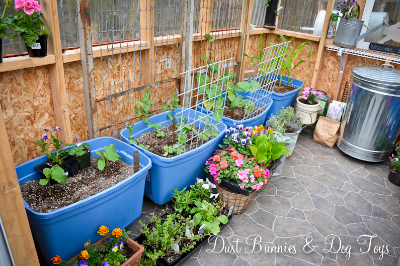 After replacing several of the plants 2-3 times I gave up deciding that the location just wasn’t getting enough light for herbs. I moved the remaining viable plants outside on the deck to a raised planter (which you may remember from last season) so they are still nearby for use when cooking or grilling, but stay out of reach of the dogs.