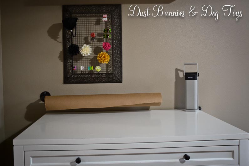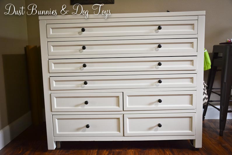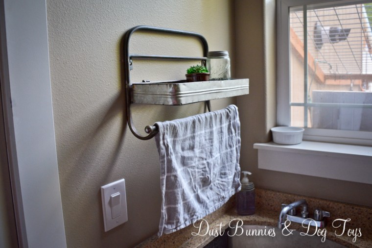 The Hubs cut me two pieces of wood from some scrap we had from another project and I dug out my outdoor teal paint to give them a couple coats. A little distressing around the edges gave them the perfect rustic look. The Hubs attached the bins to the new boards and I had this cuteness!