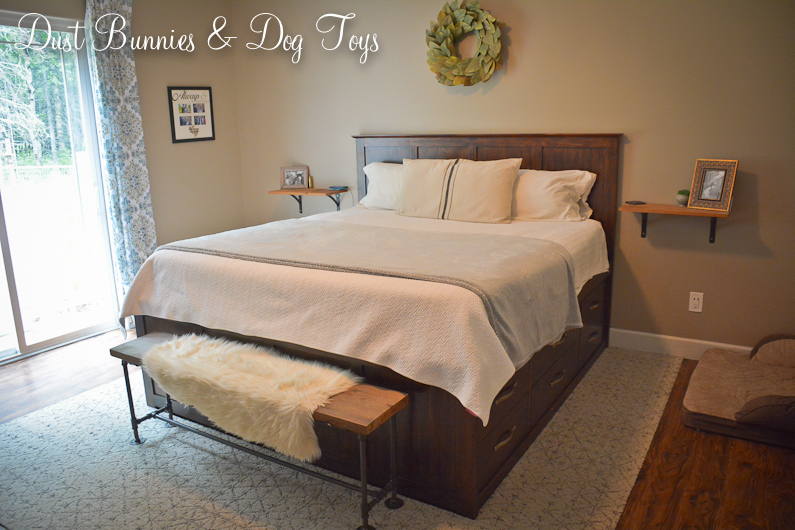 You only notice the seems if you look really closely, which I’m pretty sure no one who is in our bedroom does. 😉 I LOVE the traditional neutral coloring in the pattern we picked out because it will go with so many things, even if I change up the colors in this space in the future.