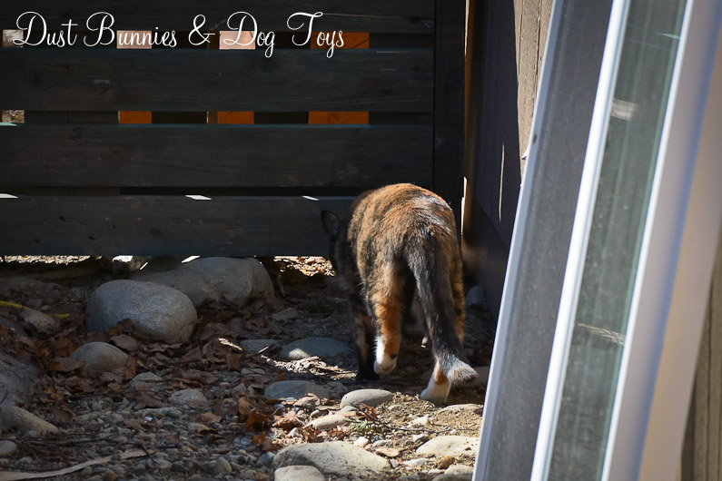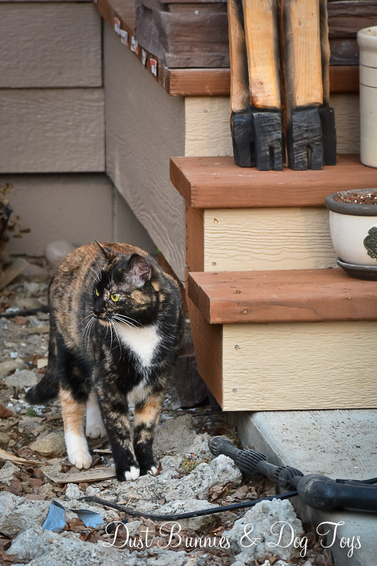 The hubs dug out the umbrella and we placed it with the table for extra stability. It took a tumble off the deck at the end of the season last year which broke the arm the hubs had repaired after we bought it at Goodwill. This time he used metal tubing and painted it to match so it blends in quite well.