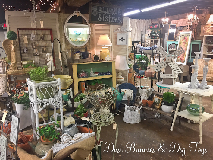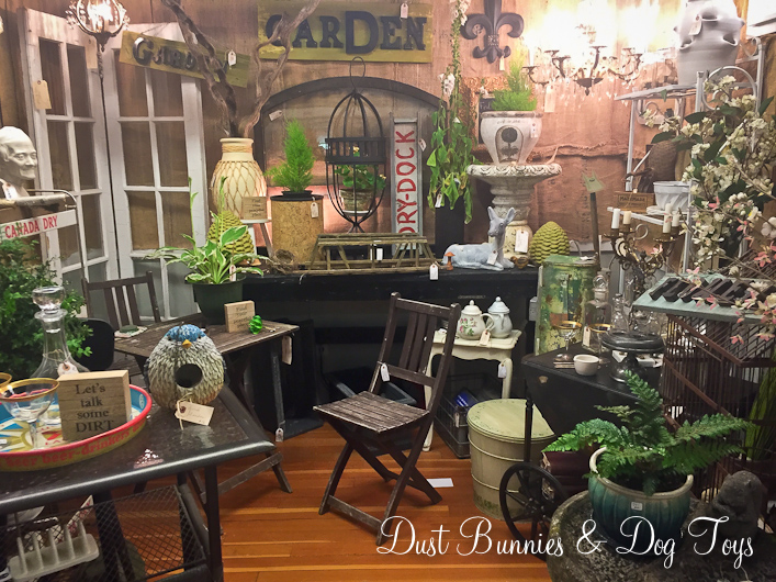 During my last visit to Portland I made a point to stop in and see an antique mall I’ve been following on Facebook for a while now. Camas Antiques is located in the heart of the historic downtown Camas, WA and is just as charming in person as it is online. Just look at this sweet storefront! It just begs you to come in – although I certainly didn’t need any convincing! Inside there were numerous vendor booths, each with a unique style. Since it was early summer during my visit many of the booths featured garden themes.