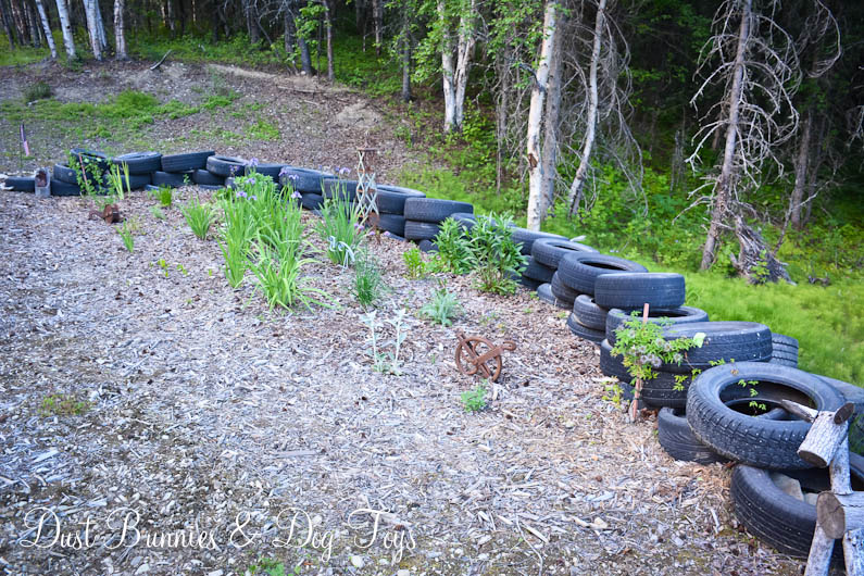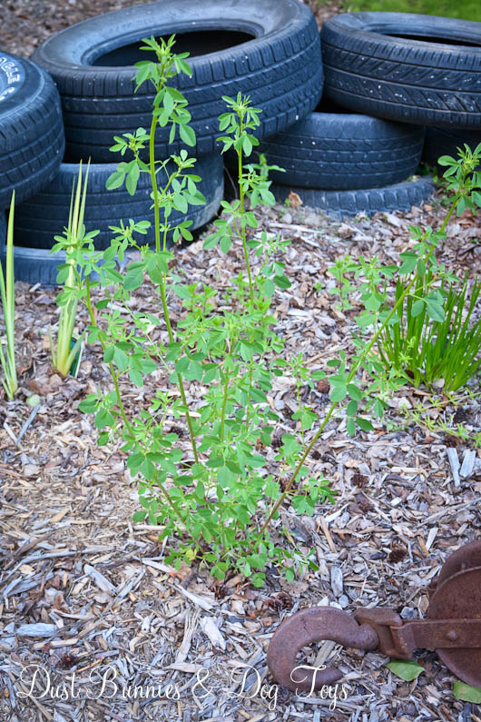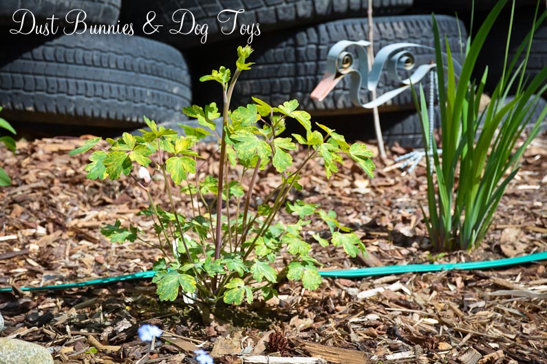 The rain garden is coming along quite well, and without much effort on my part, which is my kind of garden. I moved the tall obelisk we got at the Great Junk Hunt last year to this space for some height at the back of the garden and really like it here. I plan to transplant a lilac in the gifted garden to that same spot at the end of the season so it has more room to spread out, which will hide a large section of the tire wall. 🙂