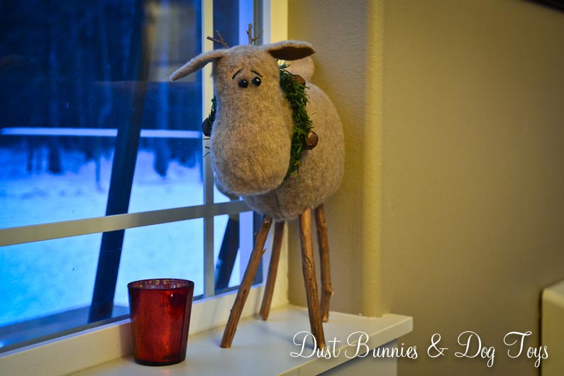 I locked eyes with Milo’s sweet face at a craft bazaar and never thought twice about bringing him home with me. I just love his little floppy ears, twig antlers and big goofy nose. I smile every time I see him. 🙂