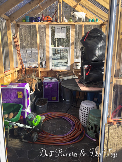 Luna decided to join me in the greenhouse as I started clearing it out. She seemed to appreciate the warm cozy temps inside and made herself quite comfortable.