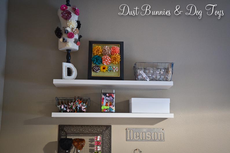 With the new shelves done I was finally ready to hang the “create” art I got forever ago. It looks great with the shelves and coordinates with the dark bed frame and baskets. Now that it’s up I’ll have to share the story behind it soon.