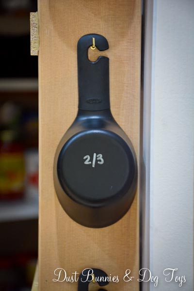 My often used paints and stains found a home on the top shelf for easy access. I reused the baskets I already had and filled in the extra spot with a gym basket I already had as well.