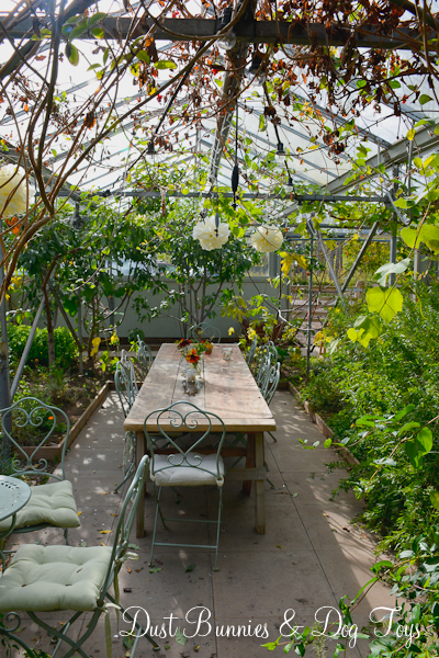 Inside the green house I discovered another amazing seating area, perfect for groups and fun parties. There were several table setups throughout the green house, each surrounded by the lush plants.